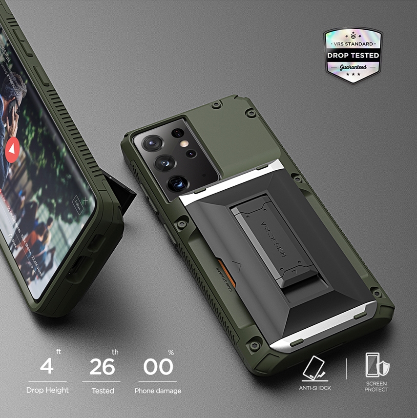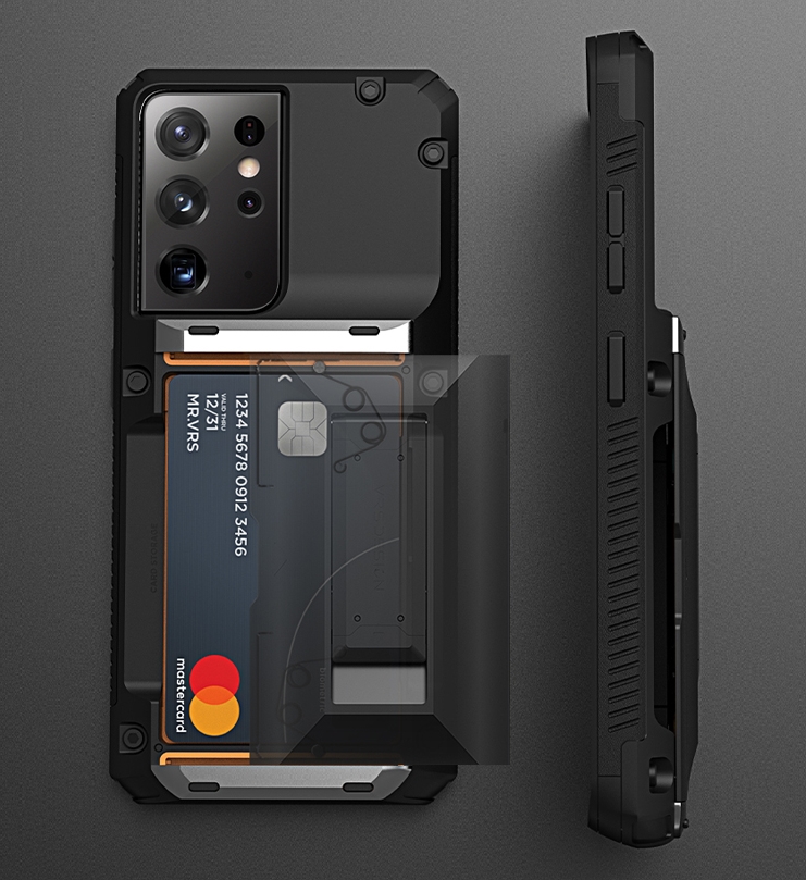 카드 케이스는 4장씩 들어가는 일반 카드 케이스와 뒤에 거치대가 장착되어 있는 제품이 있고 색상은 그린, 블랙, 그리고 재질이 다른 샌드 스톤이 있습니다.